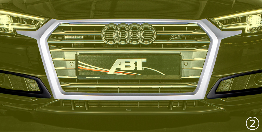 | 8W008002170 | ② | ABT - FRONT GRILLE ADD-ON | material ABS consisting off: - front grill add-on silver (1-pcs.) - air intake cover gloss black (2-pcs.) |