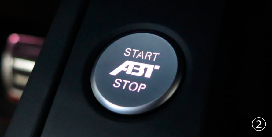 | 8W607024130 | ② | ABT - START-STOP-SWITCH-CAP | Start-Stop Switch Cap with ABT-logo, only suitable for left hand driven vehicles with integrated illuminated ABT Logo |