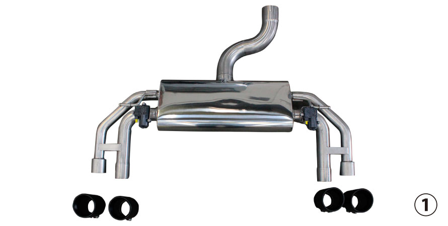 | 8V002023200 | ① | ABT - MUFFLER SYSTEM | ABT muffler system for vehicles with serial rear skirt 4-end pipes, stainless steel with black chromed endpipes Ø 102 mm incl. ABT - end pipe covers |
